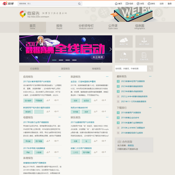 微報(bào)告(https://data.weibo.com/)已被三體網(wǎng)址大全收錄在網(wǎng)址百科信息庫(kù)中,所在分類目錄為”電腦網(wǎng)絡(luò) > 搜索 > 分類搜索大全“目錄,百科頁(yè)面地址:http://m.fashionflairtrend.com/siteinfo/8020.html。三體網(wǎng)址大全匯聚國(guó)內(nèi)優(yōu)秀網(wǎng)站大全,是提升網(wǎng)站外部鏈接流行度以及影響力的權(quán)威分類目錄及收錄提交入口,歡迎廣大優(yōu)質(zhì)網(wǎng)站提交收錄申請(qǐng)。