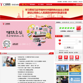 廣州地鐵(Guangzhou Metro)提供安全、準(zhǔn)點(diǎn)、便捷、人性化的軌道交通服務(wù),同時(shí)依托資源和實(shí)力優(yōu)勢(shì),從出行到商住,提供一體化生活方式,并依靠多年的經(jīng)驗(yàn)和知識(shí),提供專業(yè)的行業(yè)服務(wù),最終踐行全程為你的品牌理念。內(nèi)容覆蓋公司概況、公司新聞、多元化業(yè)務(wù)、乘客服務(wù)(包括乘客服務(wù)、票務(wù)指引、安全常識(shí)、列車介紹、應(yīng)急設(shè)備、延誤告知、聯(lián)系我們、實(shí)時(shí)查詢和服務(wù)設(shè)施等)和業(yè)務(wù)辦理(包括人才招聘、招標(biāo)投標(biāo)、商鋪?zhàn)馊?、企業(yè)庫(kù)與誠(chéng)信評(píng)分和地鐵保護(hù))。