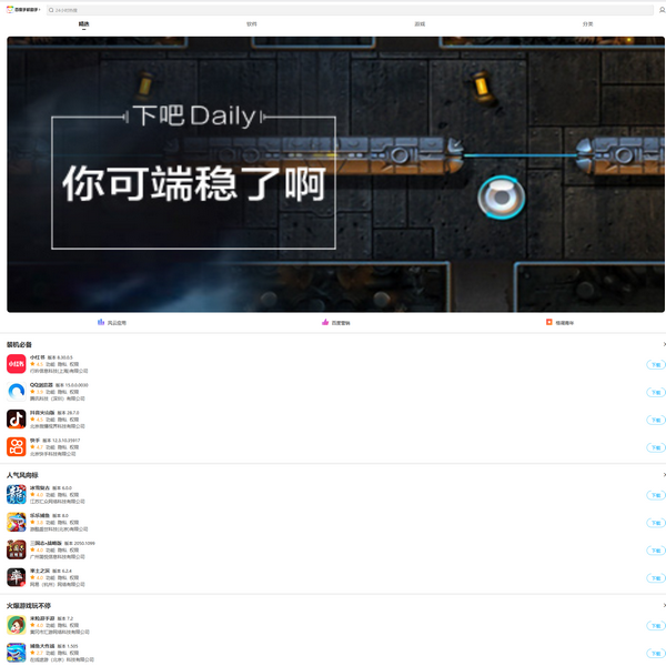 百度手機助手:擁有海量免費優(yōu)質(zhì)安卓Android手機應(yīng)用,提供極速下載,匯集***最火熱的安卓應(yīng)用、好玩的安卓游戲、實用的安卓軟件、每日勁爆推薦榜單,各種時下流行熱門合輯等,盡在百度手機助手!