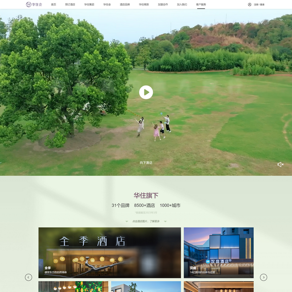 截至2023年6月30 日,華住在18個(gè)國家經(jīng)營8,750家酒店,擁有844,417間在營客房,為2.18億+會(huì)員提供住宿和旅途服務(wù),創(chuàng)造14萬+職業(yè)發(fā)展機(jī)會(huì)。華住集團(tuán)旗下經(jīng)營31個(gè)酒店及公寓品牌,覆蓋從豪華到經(jīng)濟(jì)型市場(chǎng)。在國內(nèi)運(yùn)營的品牌包括禧玥、花間堂、美侖國際、桔子水晶、漫心、美侖、美居、CitiGO歡閣、全季、桔子、漢庭、星程、宜必思、海友、你好、城家公寓、瑞貝庭公寓酒店,另有合作品牌諾富特、美爵和馨樂庭公寓酒店等。