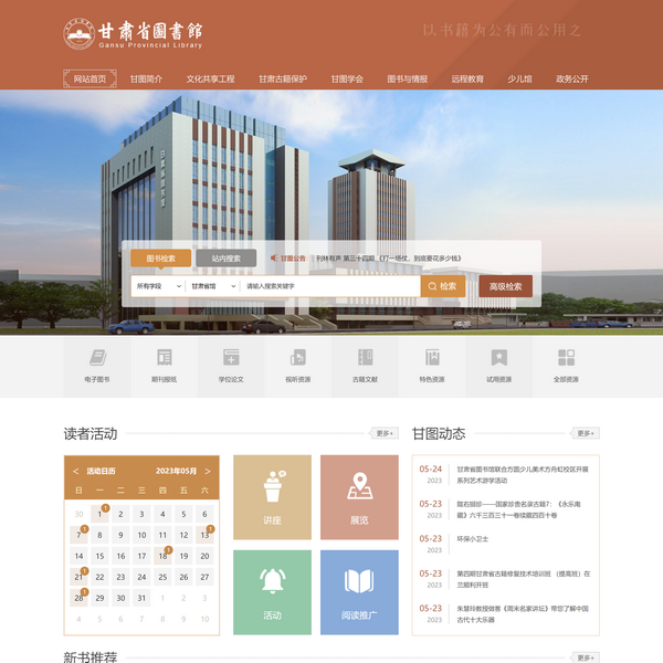 甘肅省圖書館甘肅省蘭州市南濱河?xùn)|路488號(hào)隴ICP備10002944號(hào)-1甘肅省圖書館https://www.gslib.com.cn/甘肅蘭州