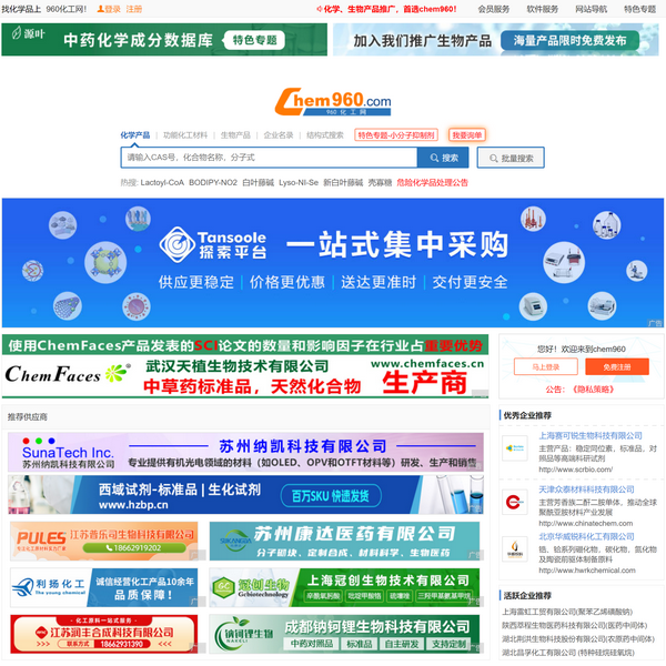 960化工網(wǎng)提供專業(yè)的化學(xué)數(shù)據(jù)庫,包括:專業(yè)的化合物數(shù)據(jù)庫,供應(yīng)商,現(xiàn)貨庫存,產(chǎn)品報(bào)價;提供專業(yè)的化...