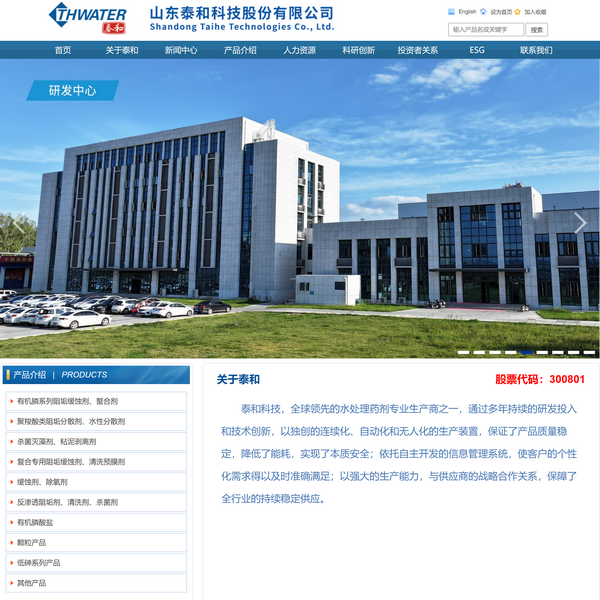 山東泰和科技股份有限公司是水處理劑(水處理藥劑)專業(yè)生產(chǎn)商。主要產(chǎn)品:阻垢劑、緩蝕劑、hedp、at...